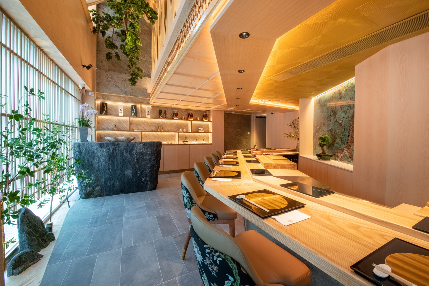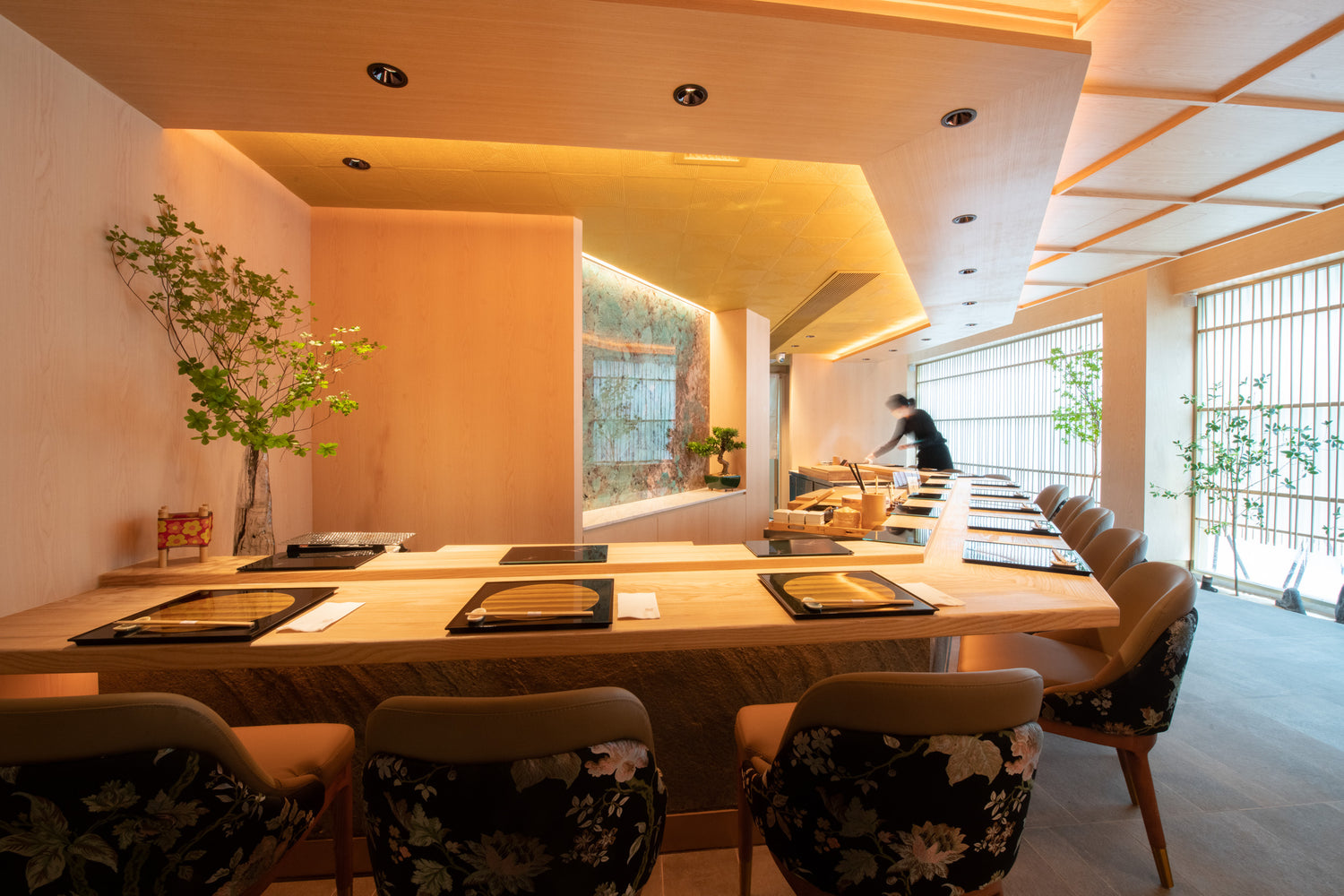 The interior is sophisticated yet straightforward, design concept uses compact space to show strong contrasting three-dimensional lines by recording all the progress from ground zero. In addition, the elements integrate intelligence with green space. As you step into the restaurant, it feels like you’ve magically teleported yourself to Japan and enjoyed an unforgettable dining experience.