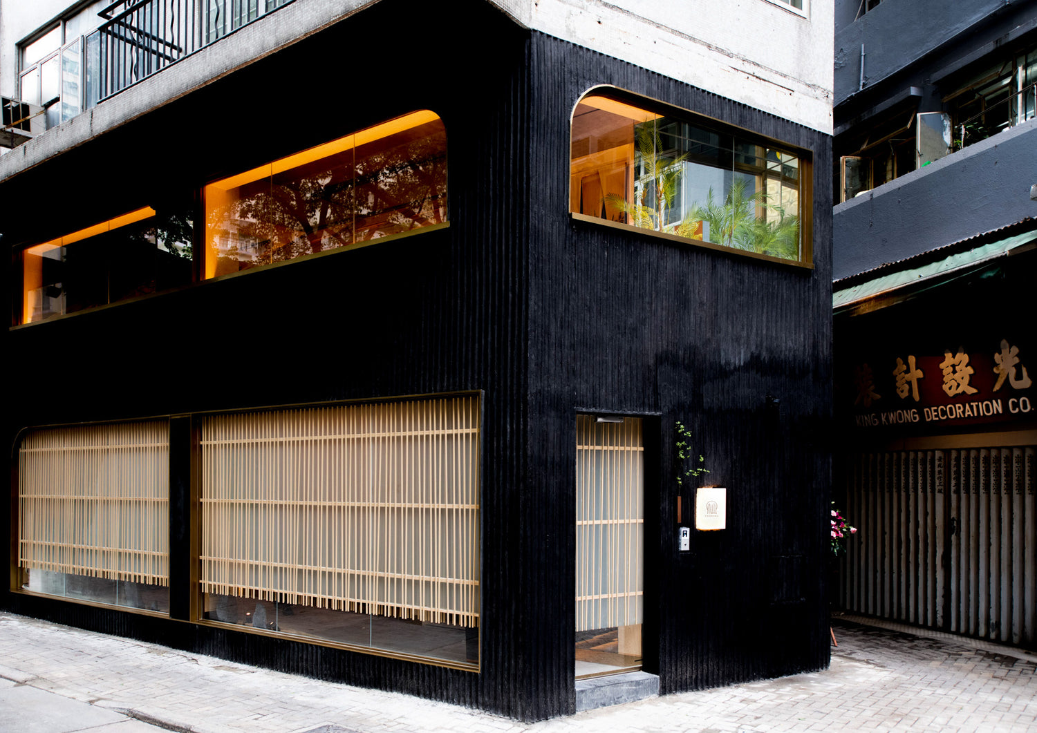 This elegant picturesque corner stands at the intersection between tradition and originality. We use artisanal techniques, ensconced in natural wood and dramatically backlit with a concealed bamboo forest with façade lighting.